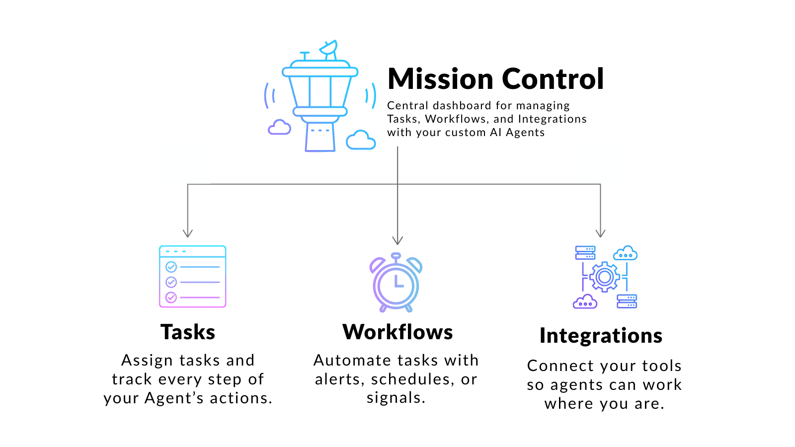 The new Mission Control makes this easier to set up. Create a Task to handle something once, or build a Workflow that runs automatically based on events from GitHub, Sentry, Slack, or any other tool you use.
